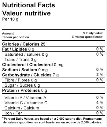 Ingredients: Sugar, red peppers, cider vinegar, pomegranate juice, pomegranate balsamic vinegar, pectin, pomegranate molasses.